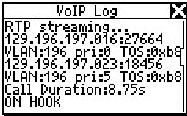 VoIP 日志显示呼叫控制事件、QoS配置以及呼叫质量矩阵。这*日志可以记录呼叫建立、配置以及呼叫结束。呼叫进行中,将显示 RTP 配置,包括IP地址和使用的端口、VLAN**权或服务类别和解码信息。*旦呼叫完成,日志显示RIP质量矩阵,例如抖动和丢包。